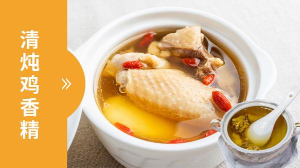 燉雞湯風味香精,香味鮮甜芳香、肉質(zhì)感、湯感、油脂感飽滿濃郁。甜、鮮、香融為一體。