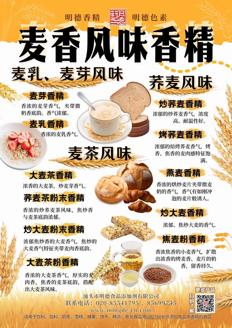 焦麥粉香精:香濃焦香的小麥香氣,擴散出濃香的烘麥香、麥片的奶香,留香持久。